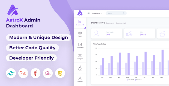 AatroX is a modern TailwindCss 2 admin template and UI framework with full